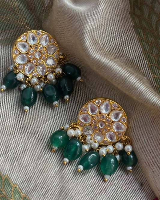 Suman kundan studs with green drops