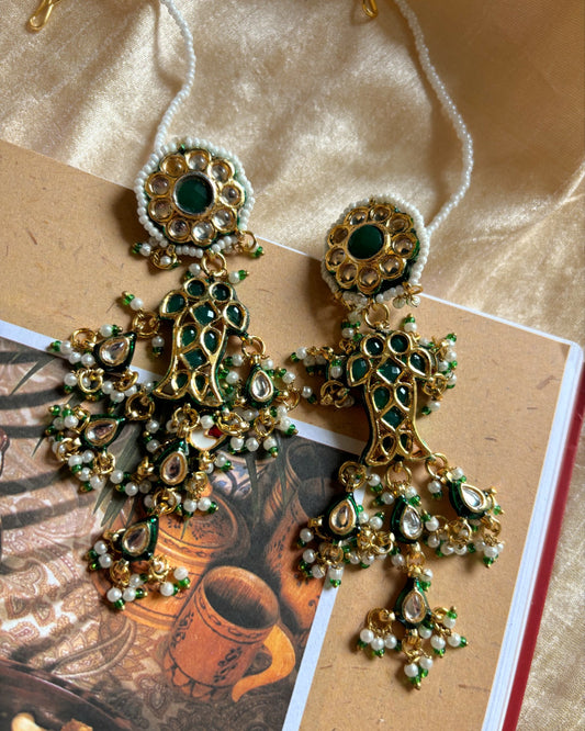 Mayuri Kundan Earrings with Green drops