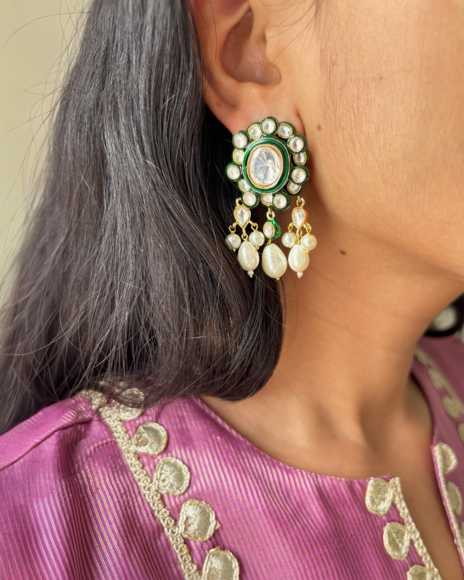 - Setting : Polki with Green Enamel coating