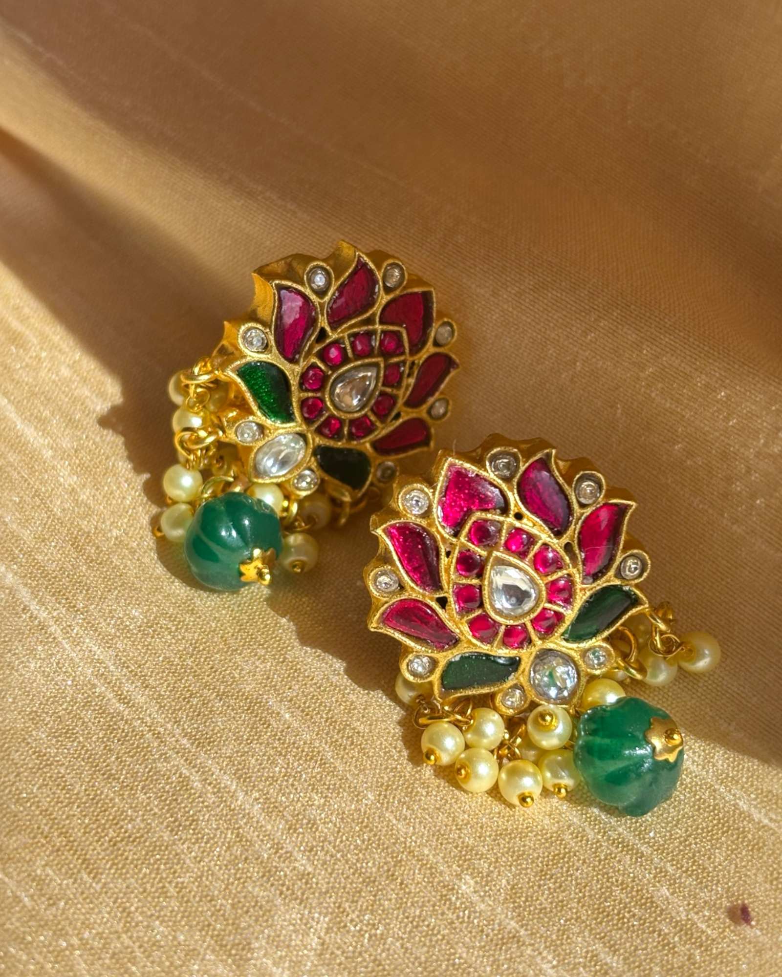 Pushpa kundan studs with green drops