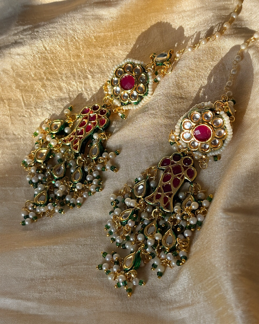 Mayuri Kundan Earrings with Green drops